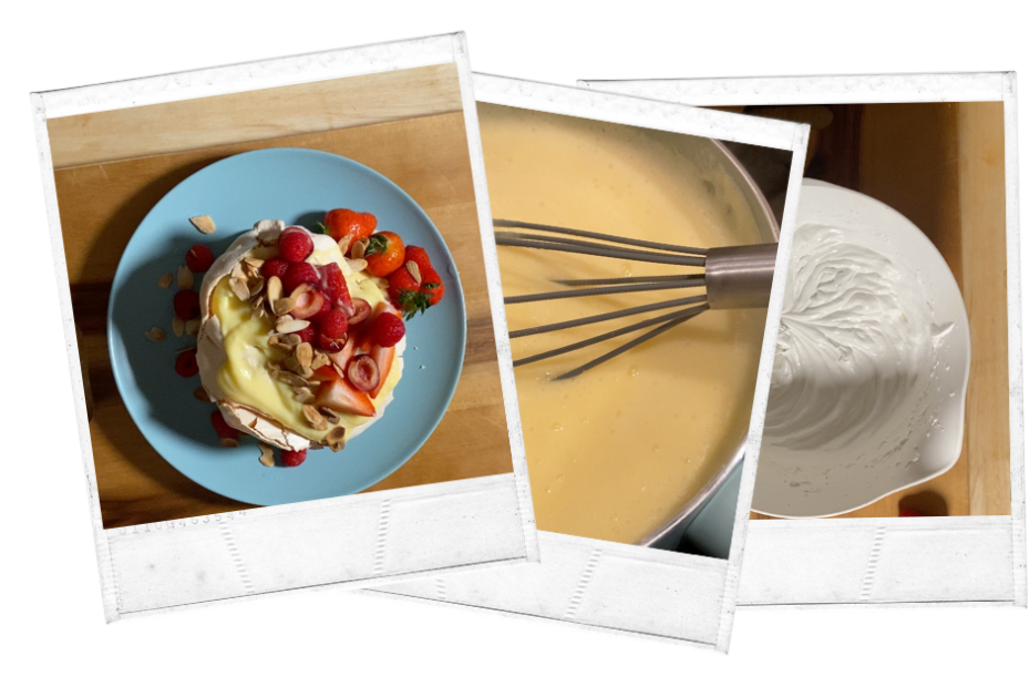 - Shape the meringue with a slight dip in the centre – This helps hold the custard later.