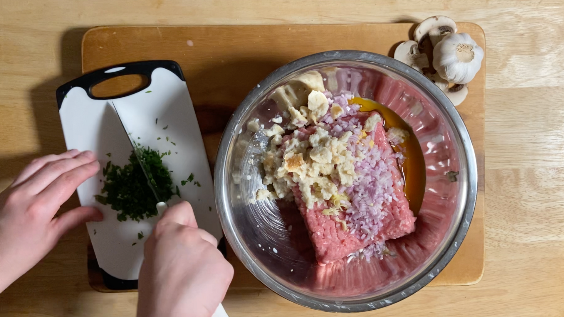- Prepare the Bread: Soak the stale baguette slices in milk until softened. Squeeze out excess milk and crumble the bread. This keeps the meatballs moist and tender.