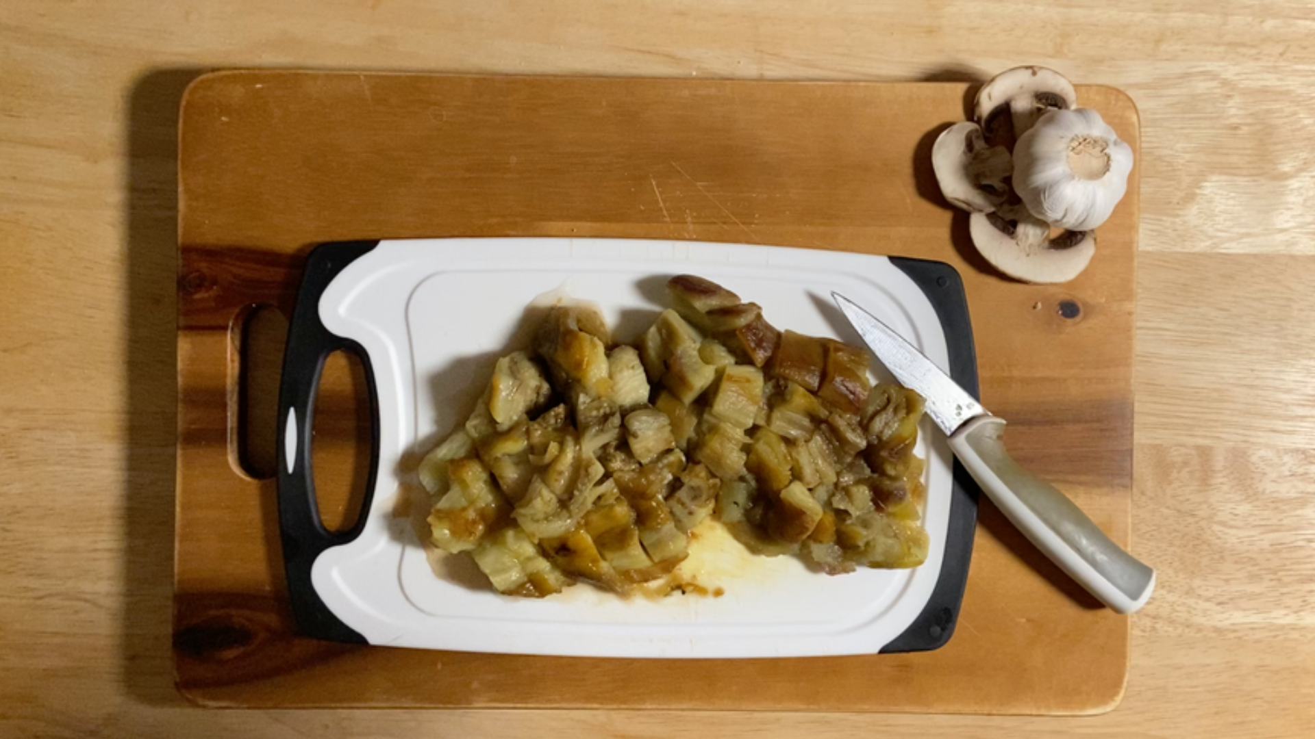 - Mash the Aubergine: Transfer the drained aubergine to a bowl and mash until smooth.