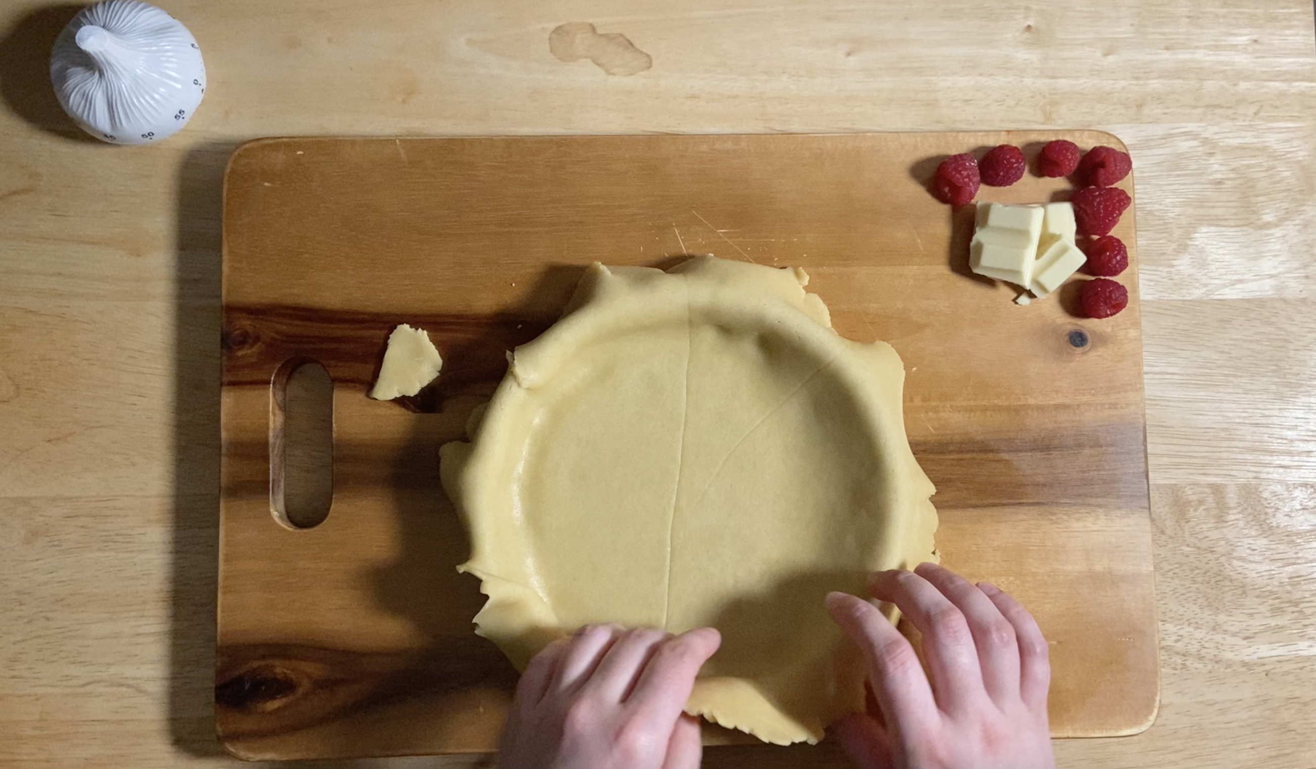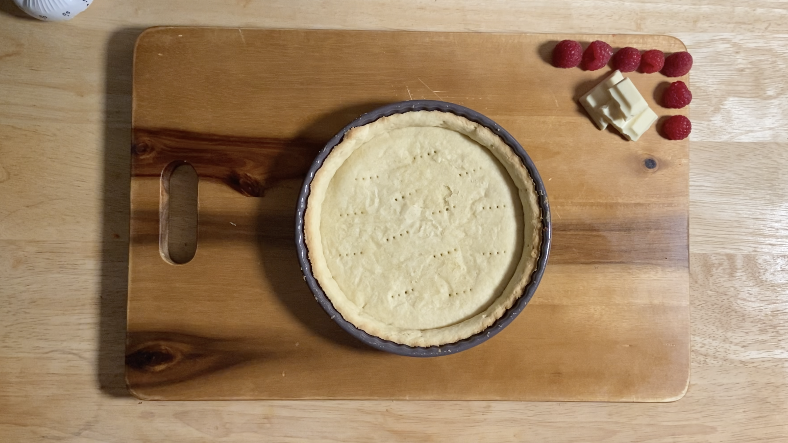 - Trim the edges, prick the base with a fork, and chill again for 15 minutes.